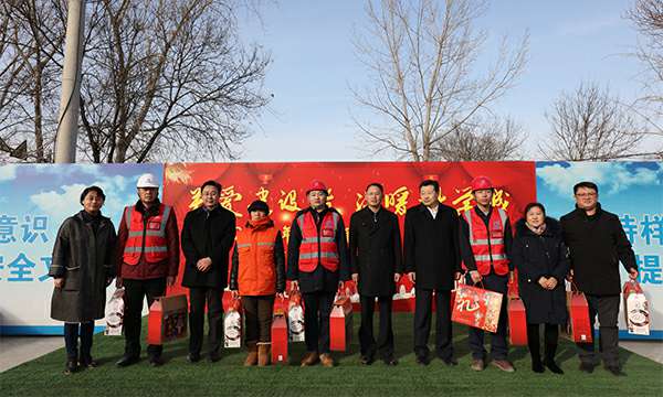 1月16日下午,怀柔区总工会在集团公司承建的一零一中学怀柔校区扩建项目部举行“关爱建设者,温暖科学城”暖心慰问活动。怀柔区委常委、组织部部长张闯,怀柔科学城党工委委员、管委会副主任伍建民,区人大副主任、区总工会主席张书远,区总工会党组书记、副主席曹岩一行,看望科学城一线建设人员和后勤保障工作人员并发送慰问品,为大家带来党和政府的深切关怀和诚挚祝福。