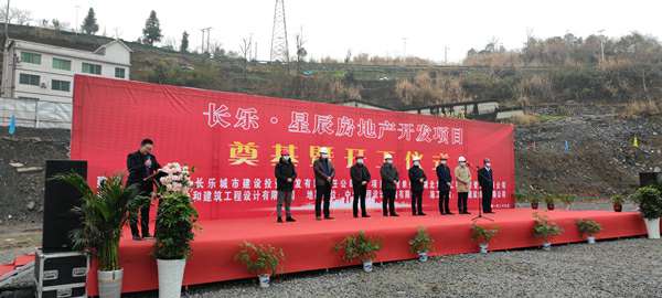 2021年1月26日上午,由FB体育(中国)官方网站-登录入口承建的长乐▪星辰住宅项目奠基暨开工仪式在项目现场热烈举行。湖北省宜昌市五峰土家族自治县住房和城乡建设局副局长陈白华、县质量安全监督站站长邓简涛、FB体育(中国)官方网站-登录入口五峰长乐▪星辰项目经理王国云,项目参建各方及新闻媒体共40余人出席。宜昌市长乐城市建设投资开发有限责任公司总经理刘鹏主持。