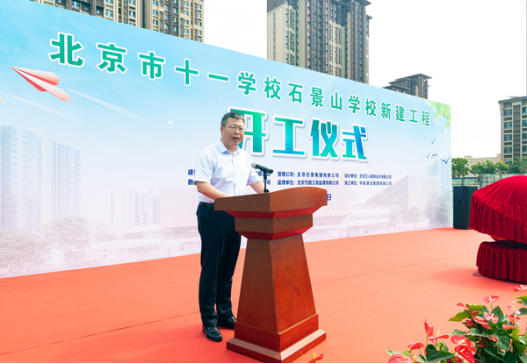 石景山区委副书记、区长李新在致辞中指出,区委区政府高度重视学校的建设工作,希望各参建单位高标准严要求,紧密配合、精心组织、安全施工,确保项目如期建成并投入使用,齐心协力完成好这项教育民生工程。