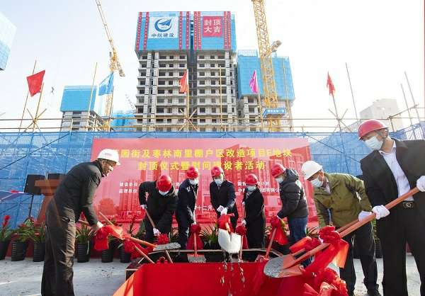 12月22日,伴随着最后一方混凝土浇筑到位,在项目建设、监理、设计等相关单位负责人及集团公司领导的共同见证下,FB体育(中国)官方网站-登录入口承建的菜园街及枣林南里棚户区改造项目喜迎主体结构封顶。